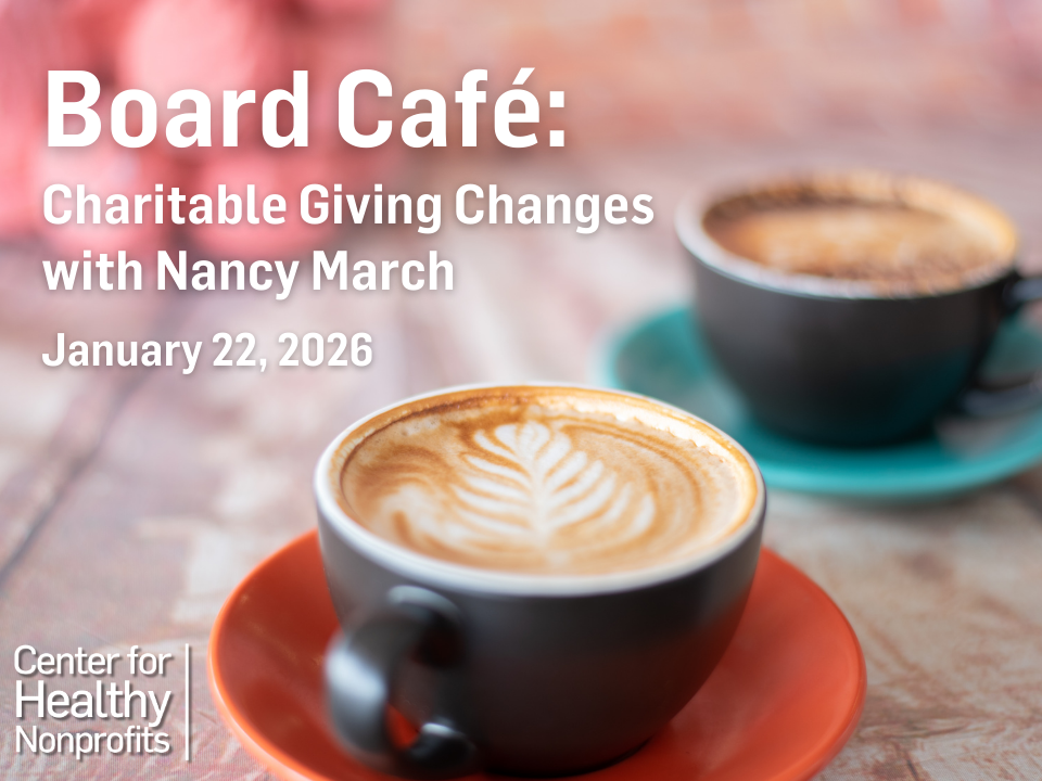 11:00 am - 12:00 pm Board Café: Charitable Giving Changes with Nancy March January 22 @ 11:00 am - 12:00 pm Board Café: Charitable Giving Changes with Nancy March